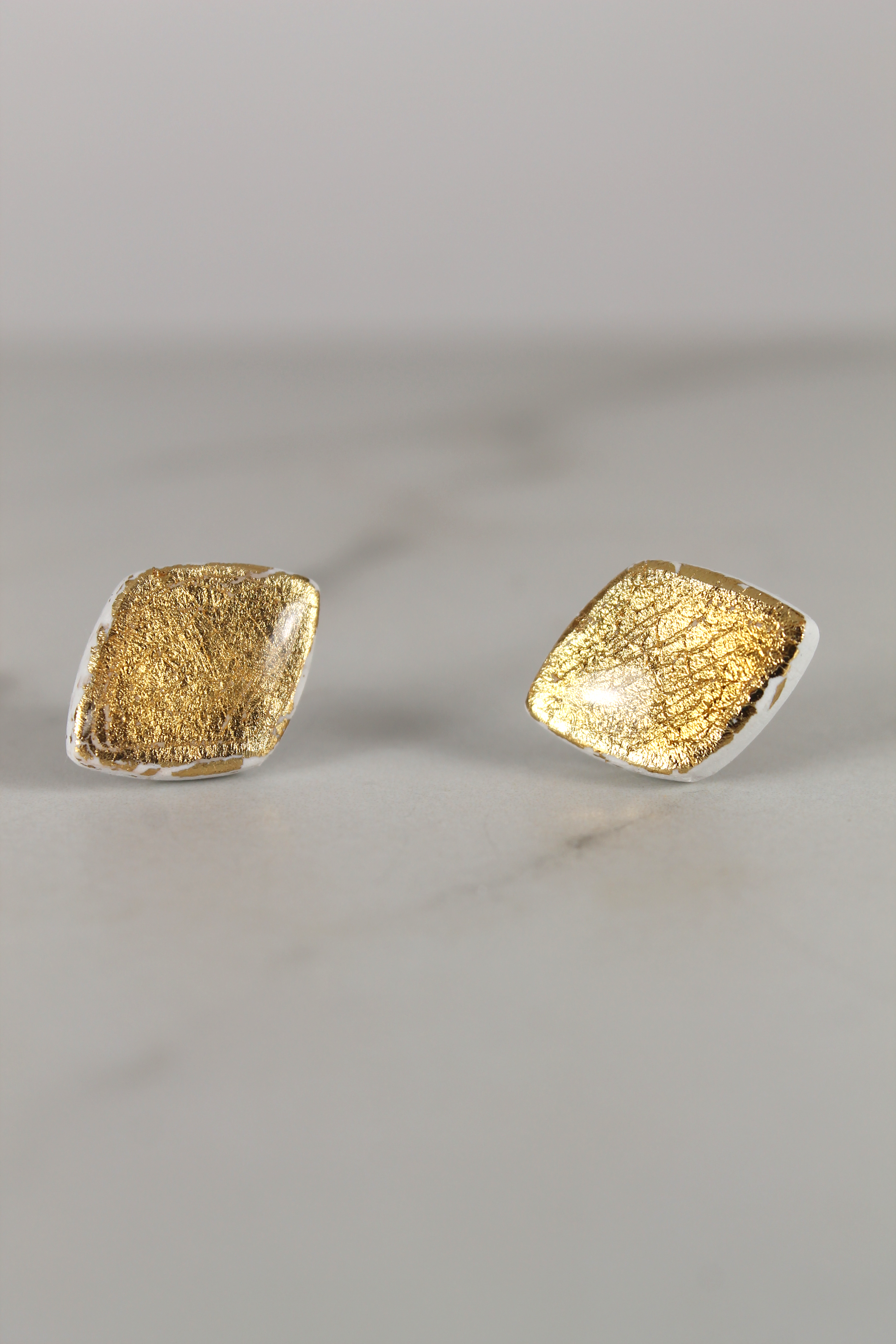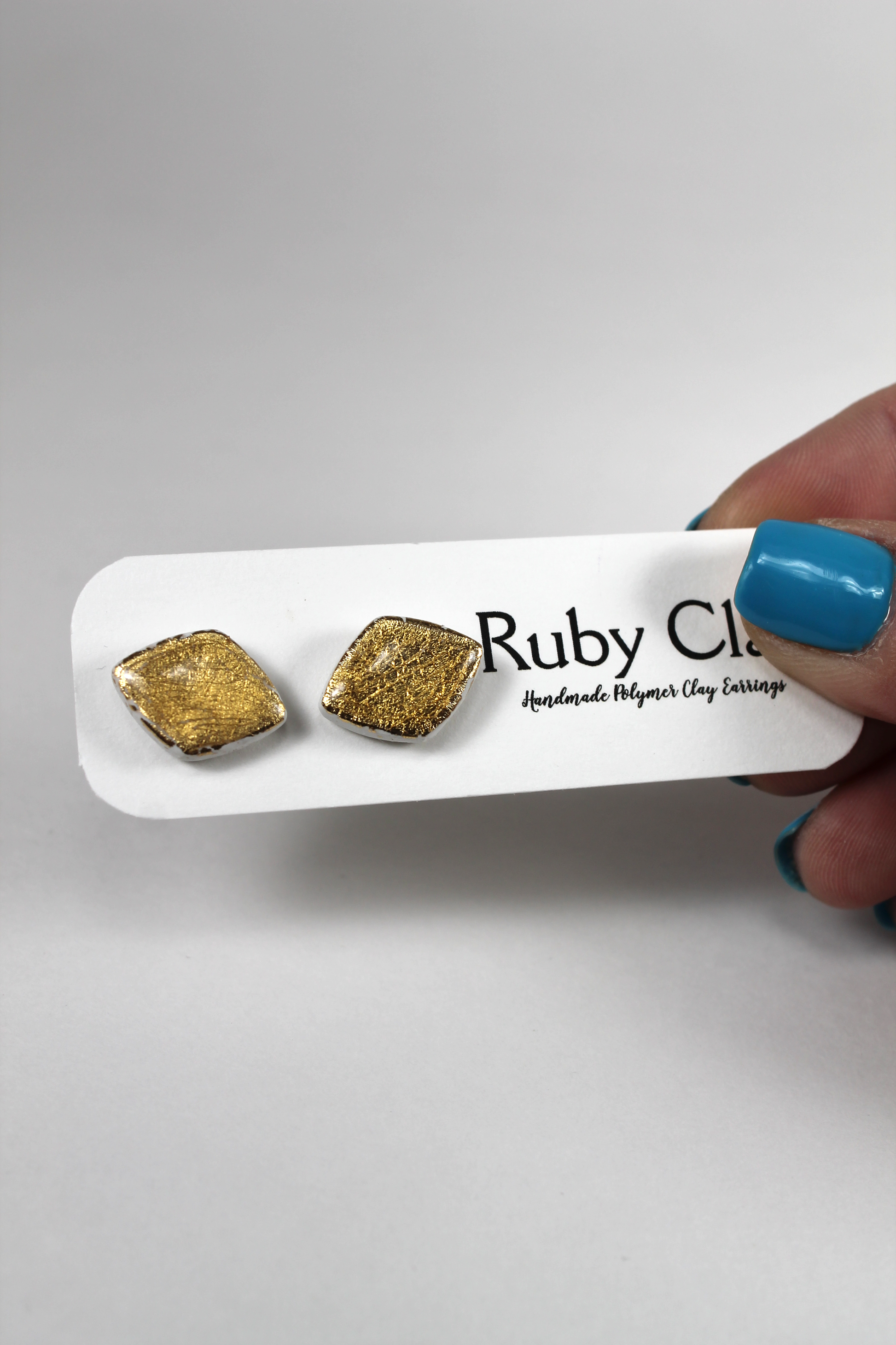 Make a statement with these shimmering diamond shaped, gold flaked clay studs.