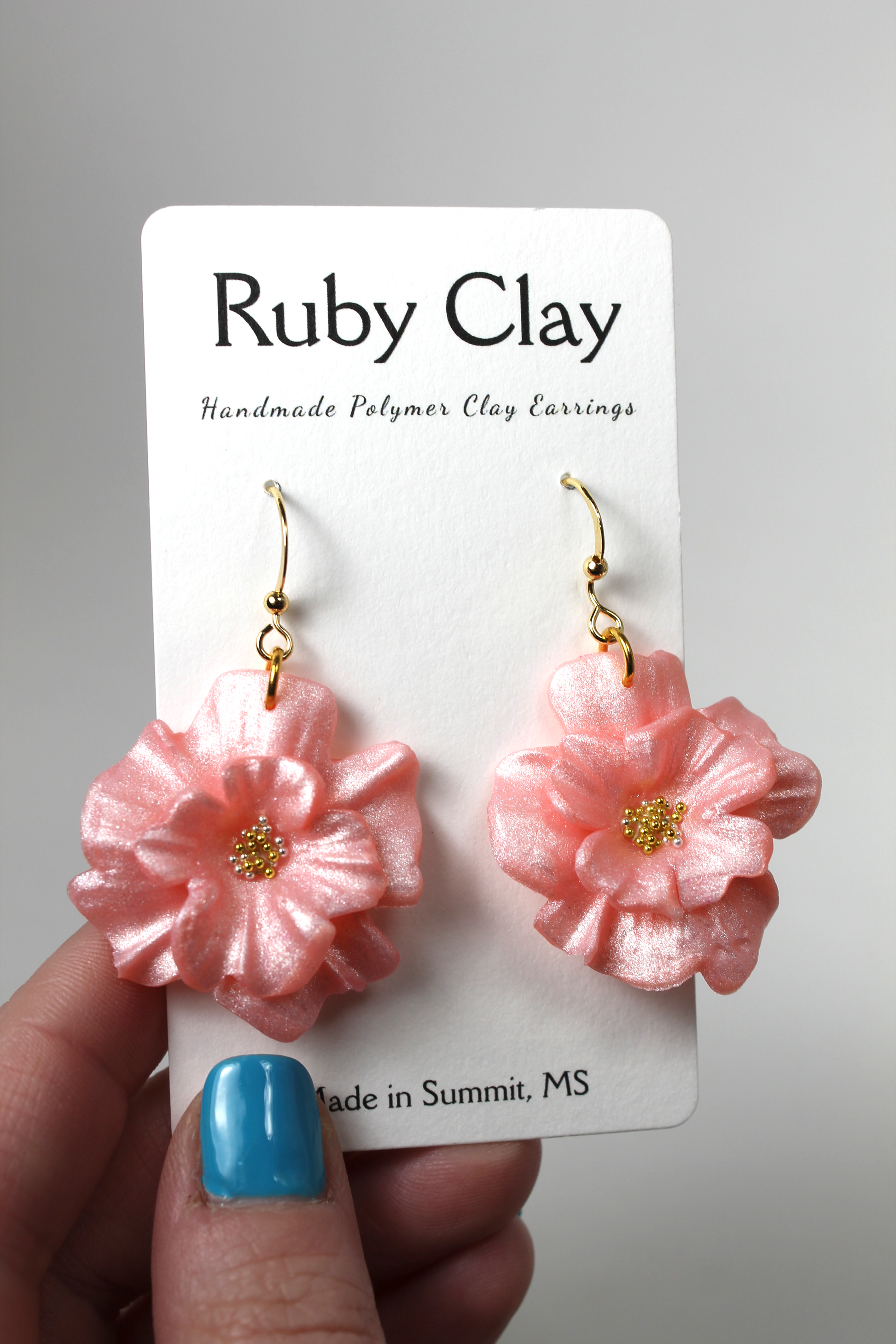Beautiful realistic clay flowers with the option of gold or silver hardware!